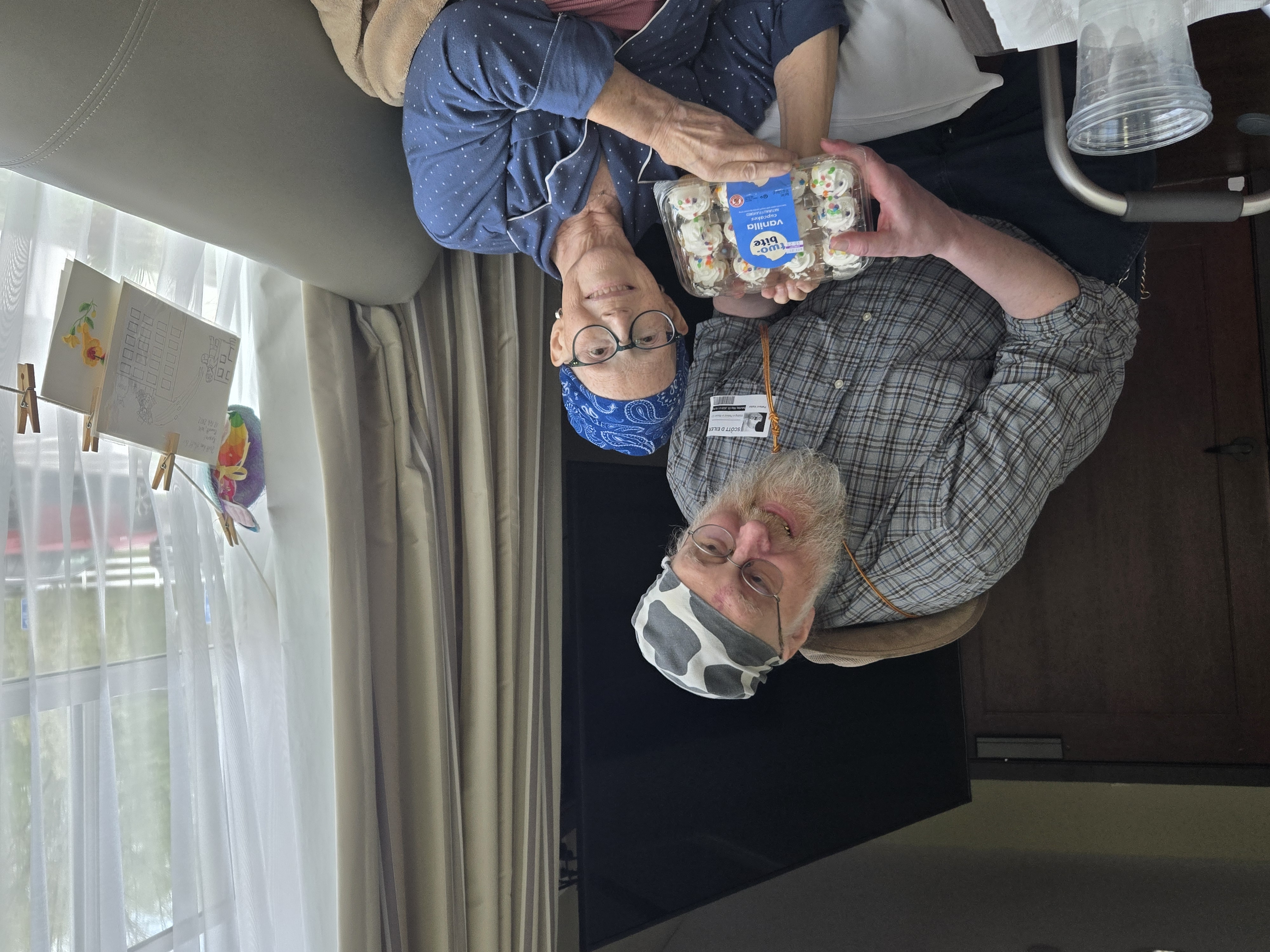 Aww, Scott at his sister's bedside for his own birthday, as rainbows fill the sky.